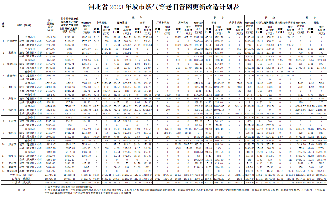 河北省2023-2025年城市燃气等老旧管网更新改造计划表