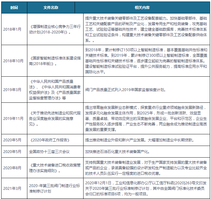 我国阀门行业相关政策汇总